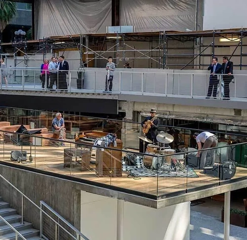 “The Retail Roof” is removed to reveal a beautiful, open-air plaza with grass, seating, music and lighting for public discovery and human connection. The Sheraton Hotel undergoes a $75 million redesign – a reimagining of every floor and room to create the incredible Sheraton Grand Los Angeles you see today.